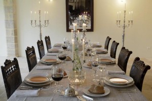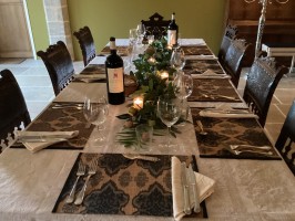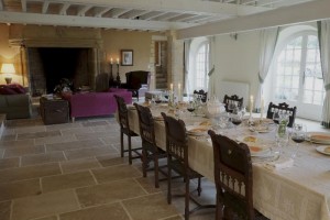 of the Abbey is the dining room (over 100 m2) with a large restored 13th century fireplace with chimney. In the dining room we have a nice library and enough surface area to organise a dance party for the whole village. In the hallway is a fourth toilet available.