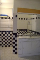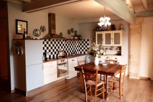 Het gastenverblijf, ook wel de gite genoemd, zit vast aan de living. Het is voorzien van een volledig ingerichte woon/eetkeuken, badkamer en twee slaapkamers. Beide kamers hebben een tweepersoons bed. Met vier personen is het uitermate geriefelijk vertoeven in dit gastenverblijf dat direct toegang heeft tot de tuin.